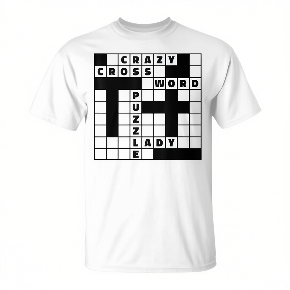 T-shirt Crazy Crossword Puzzle Lady per gli appassionati di giochi di parole, taglia adulto