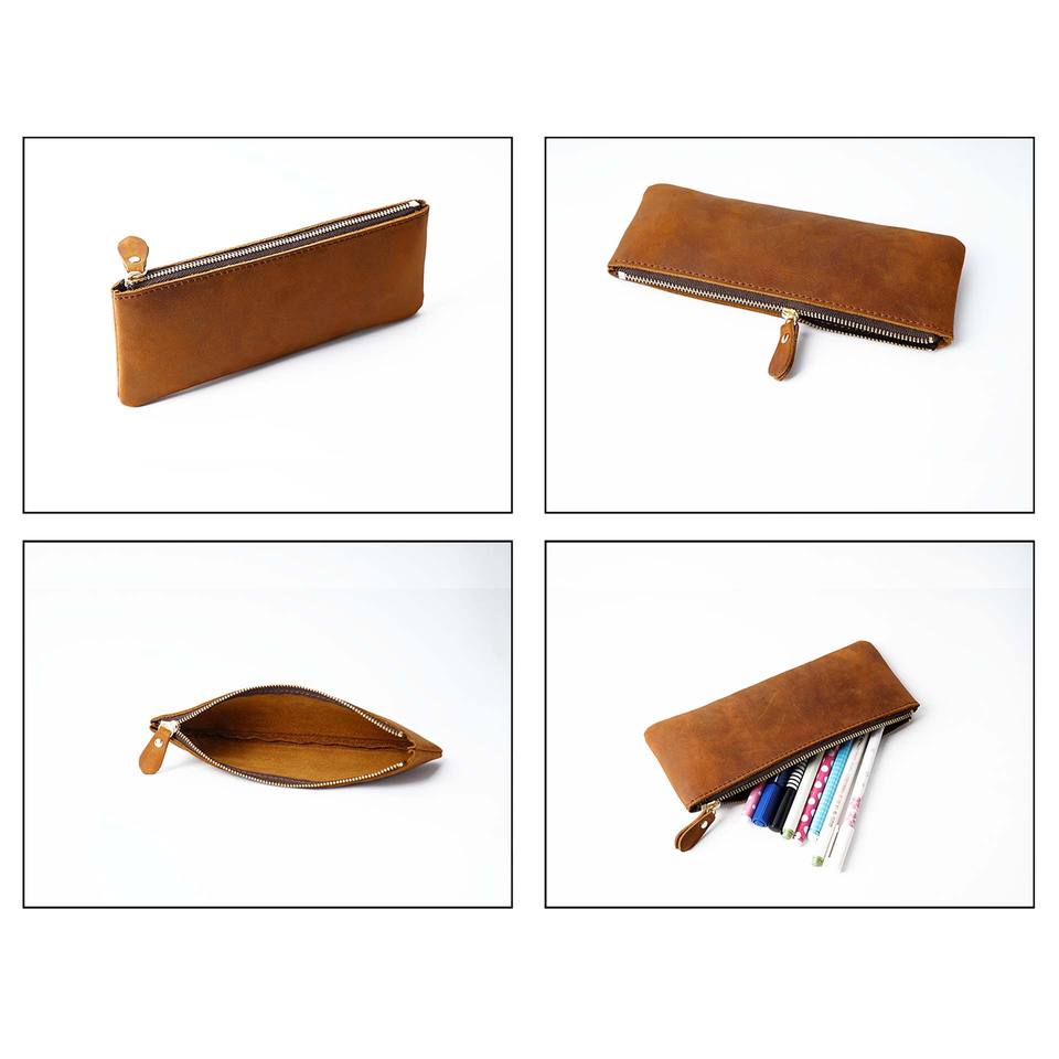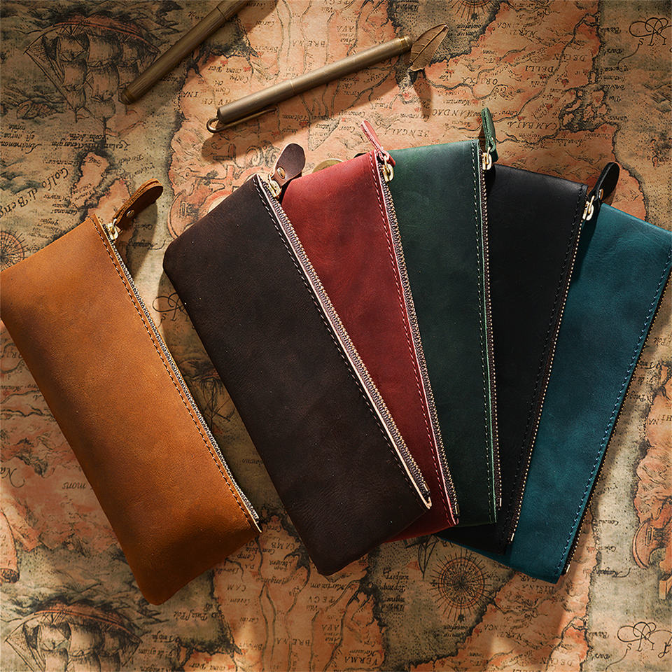 Pazzo Cavallo in vera pelle cerniera semplice piccola borsa da penna in vacchetta scatola personalizzata creatività Vintage cartoleria