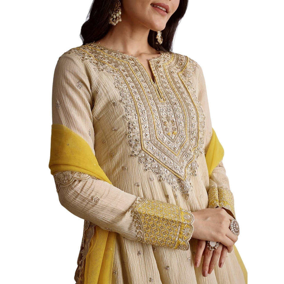 Cream Crush Tissue Sharara Suit with Zari Sequins Work for Wedding Party Festive Reception and Traditional Cultural Celebrations