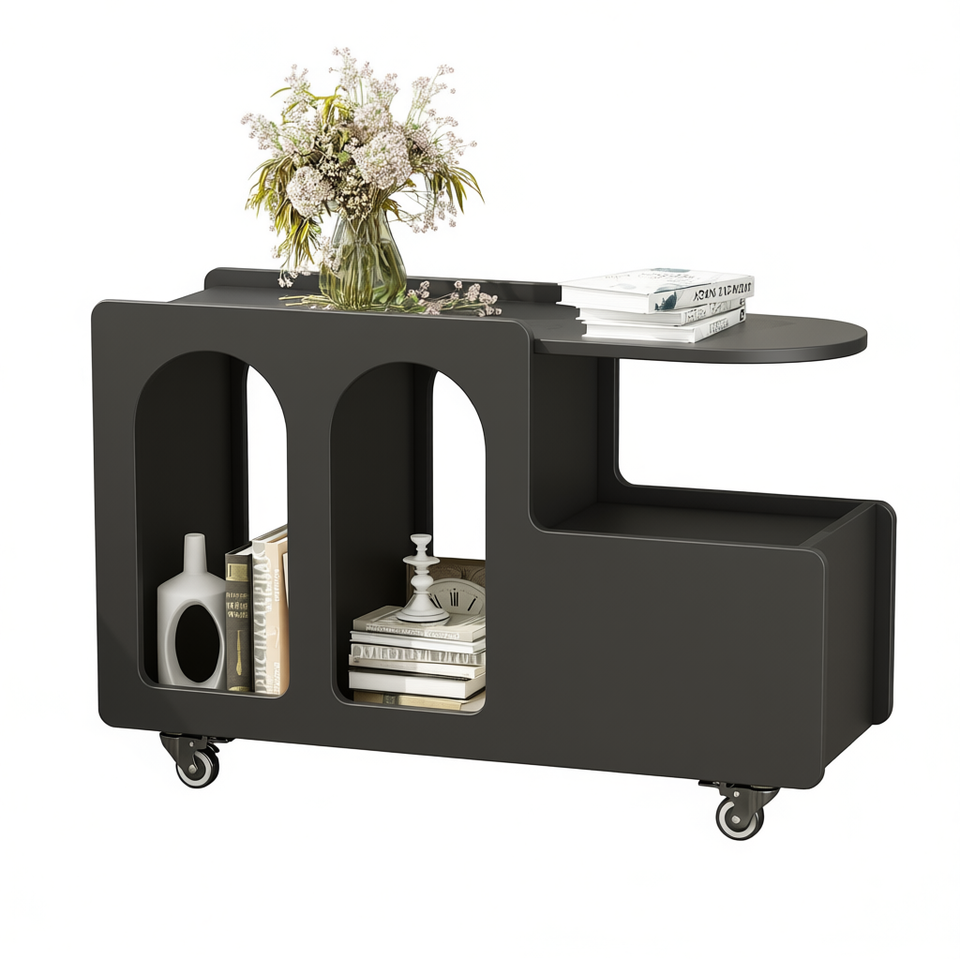 Tavolino mobile stretto da 11,8 pollici in stile crema con ruote bloccabili e comodino multi-strato per soggiorno