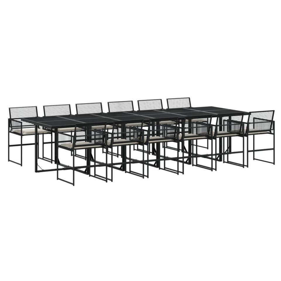 Set da pranzo da giardino bianco crema e nero con struttura in acciaio, mobili da esterno contemporanei, capacità di seduta per 10 persone o più