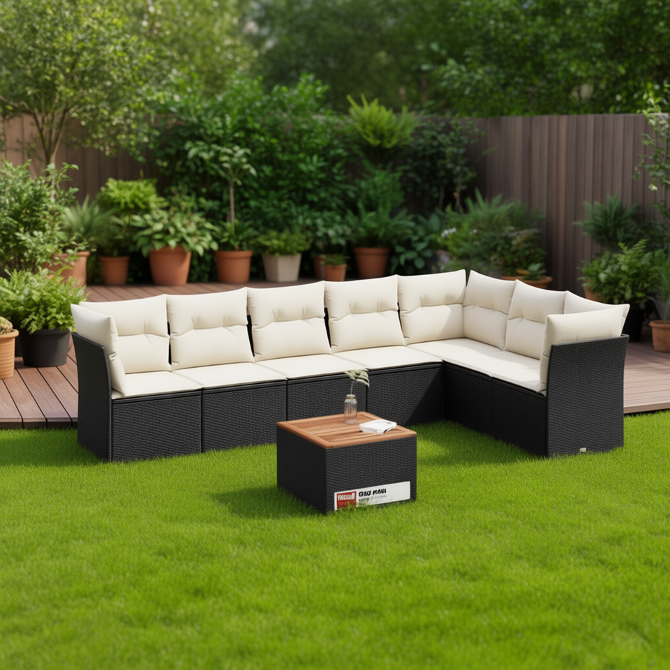 Cream White And Black Rattan Garden Sofa Set 6 Seater Outdoor Furniture Contemporary Design
