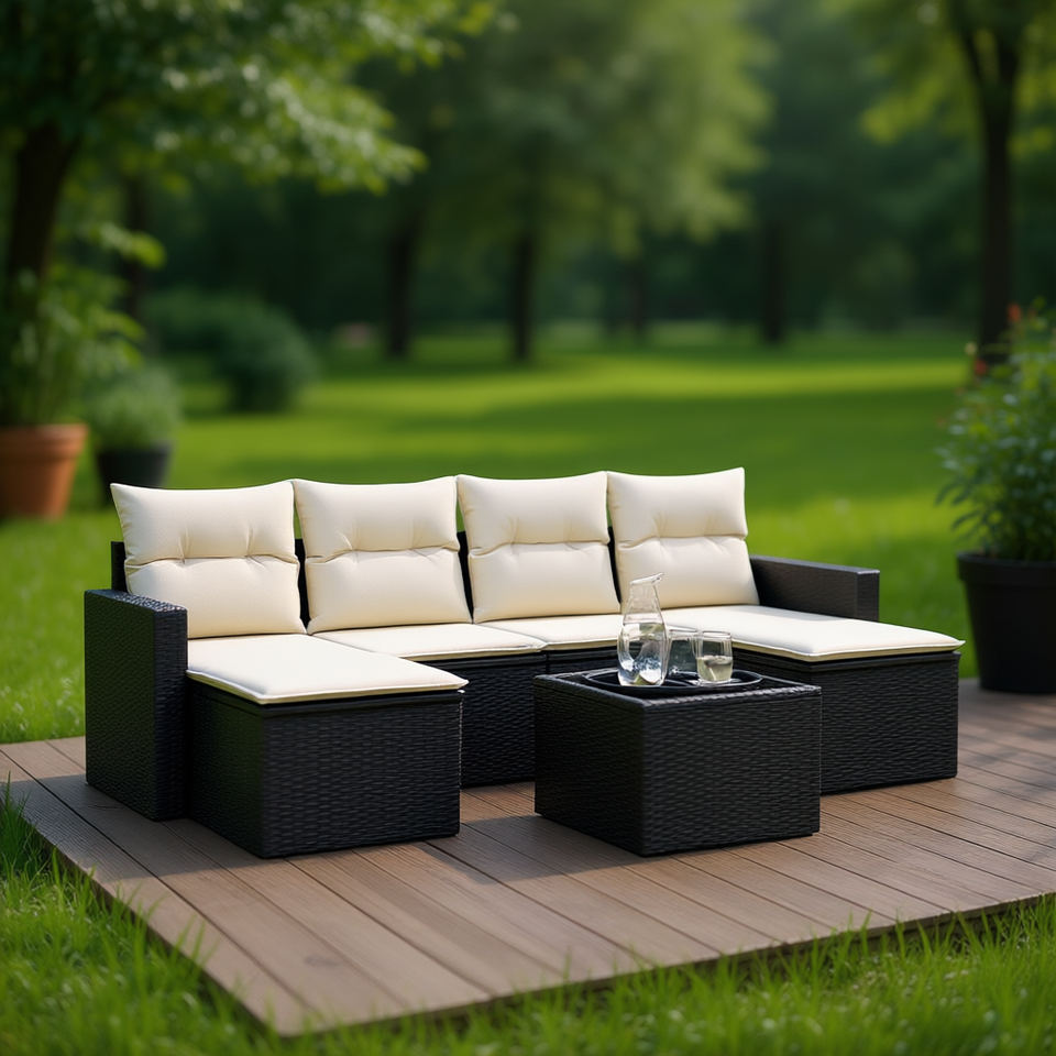 Cream White And Black Rattan Garden Sofa Set 4 Seater Outdoor Furniture Contemporary Design