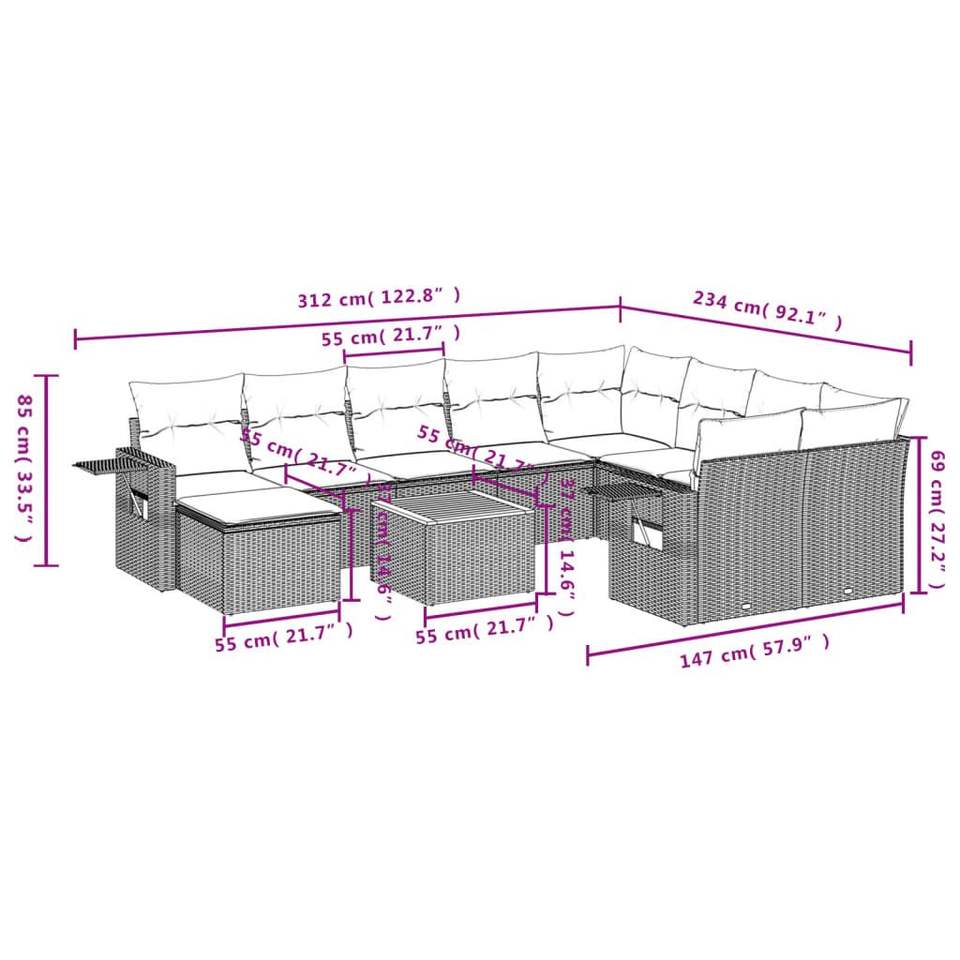 Set divano da giardino in rattan bianco crema e nero con cuscini, 6 posti, mobili da esterno, design contemporaneo