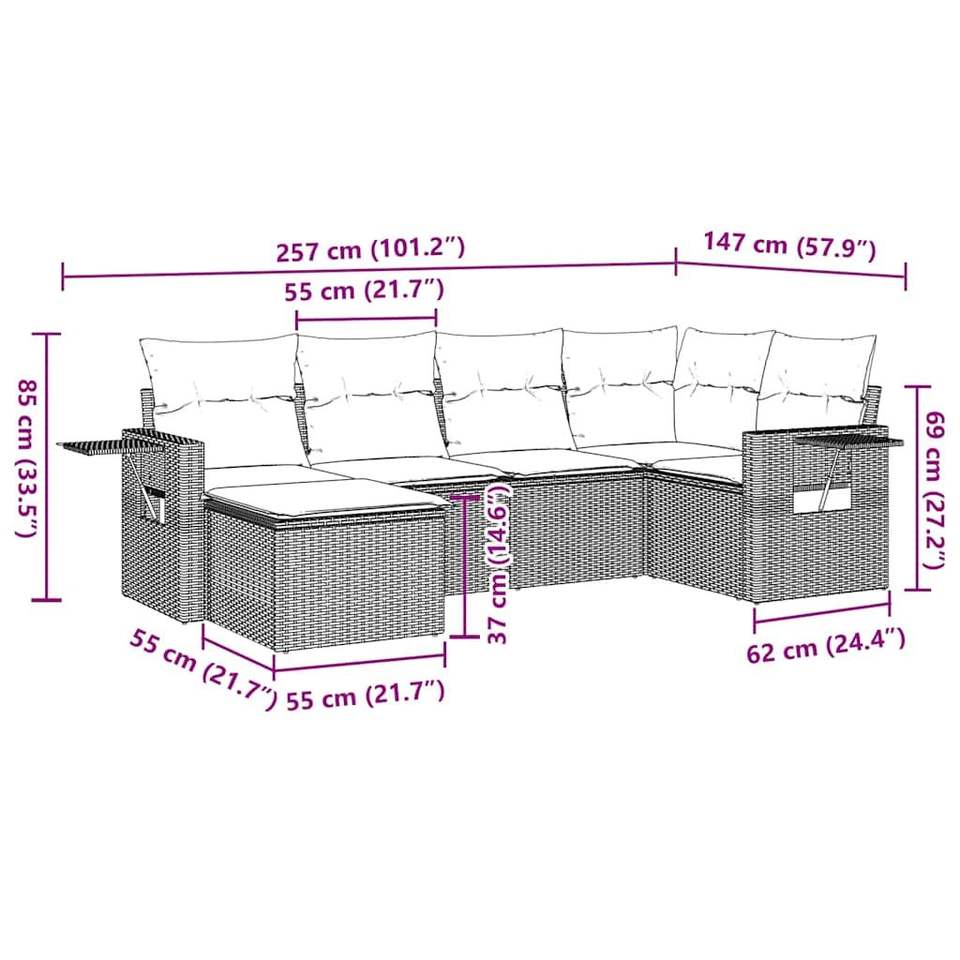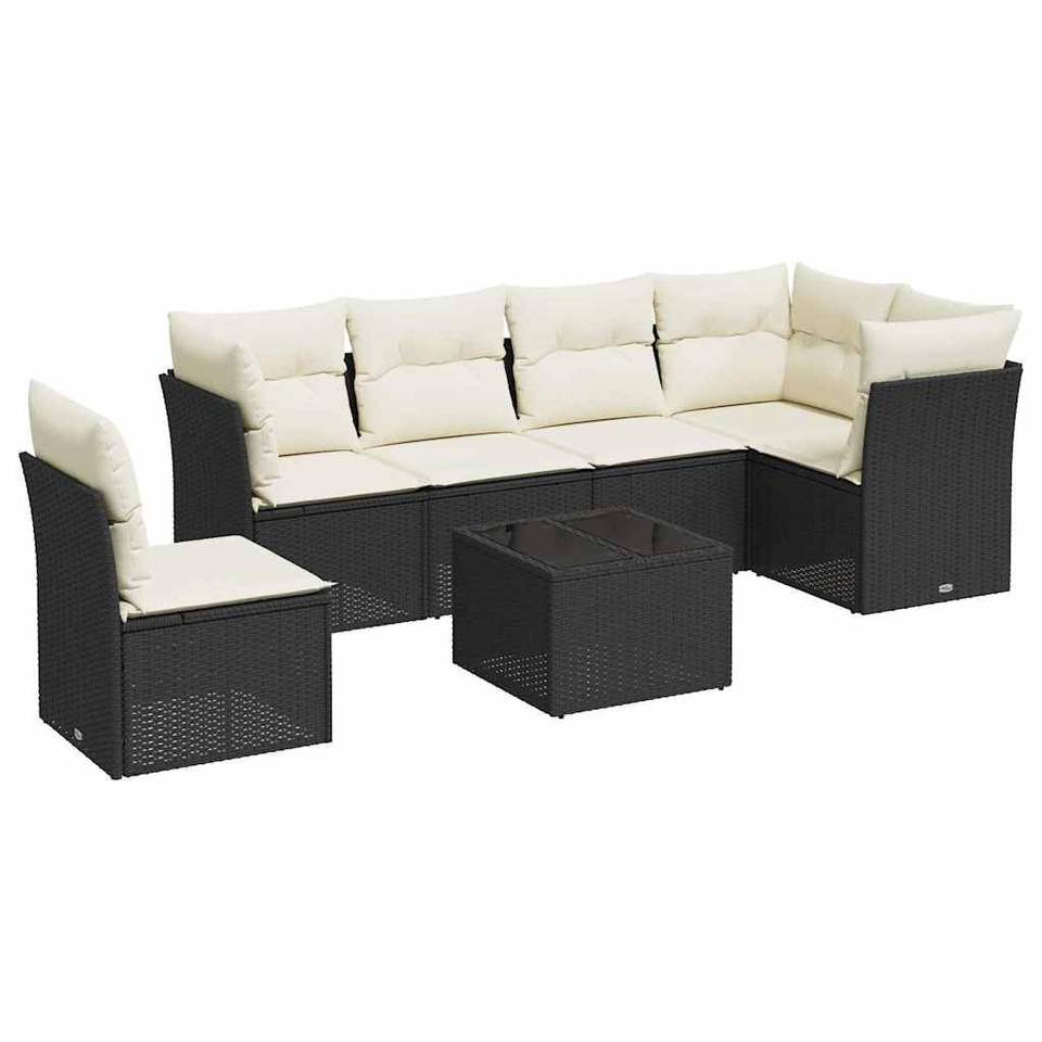 Set divano da giardino in rattan bianco crema e nero, 6 posti, mobili da esterno, design contemporaneo