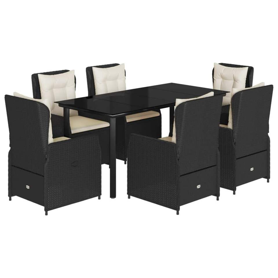 Set da pranzo da giardino in rattan bianco crema e nero, 6 posti, resistente alle intemperie, mobili da esterno dal design contemporaneo