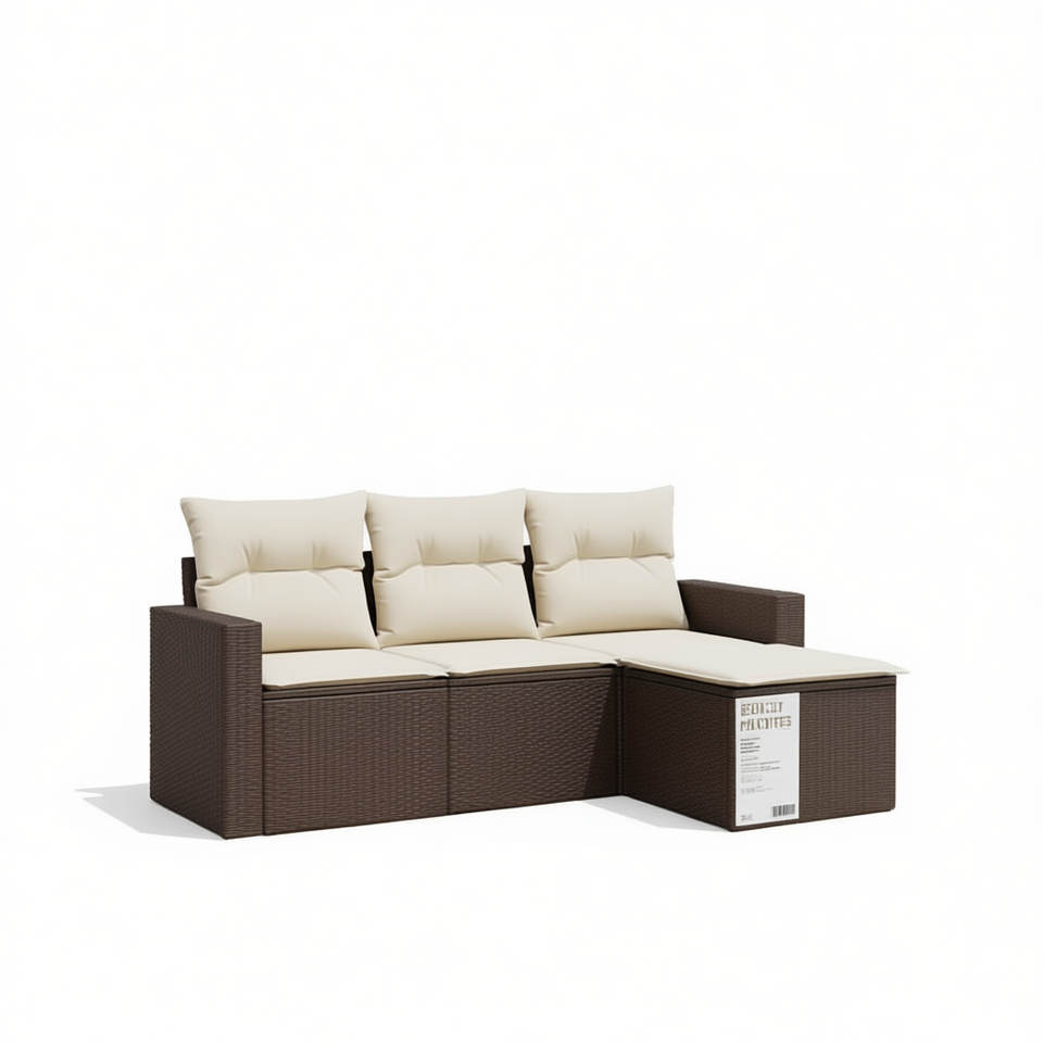 Cream White And Brown Rattan Garden Sofa Set With Cushions 3 Seater Outdoor Furniture Contemporary Design