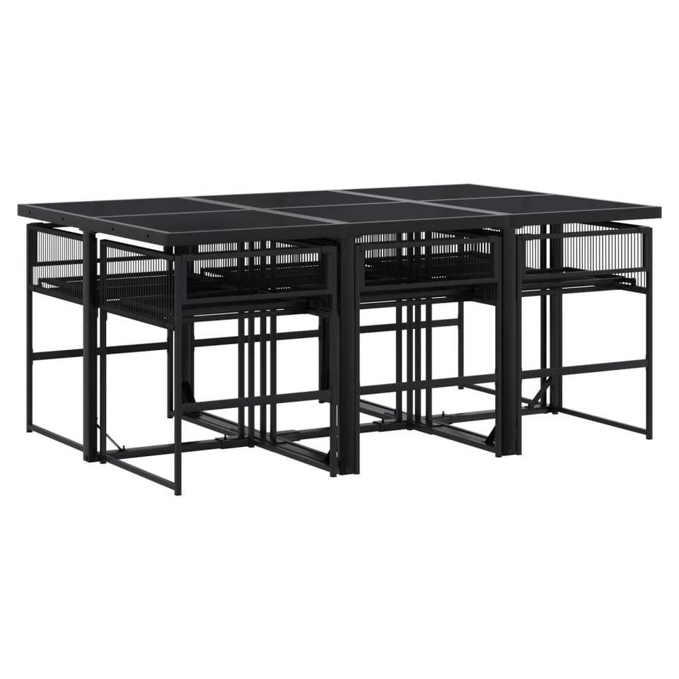 Set da Pranzo da Giardino Nero per 6 Persone, Struttura in Acciaio, Resistente alle Intemperie, Arredamento da Esterno dal Design Contemporaneo