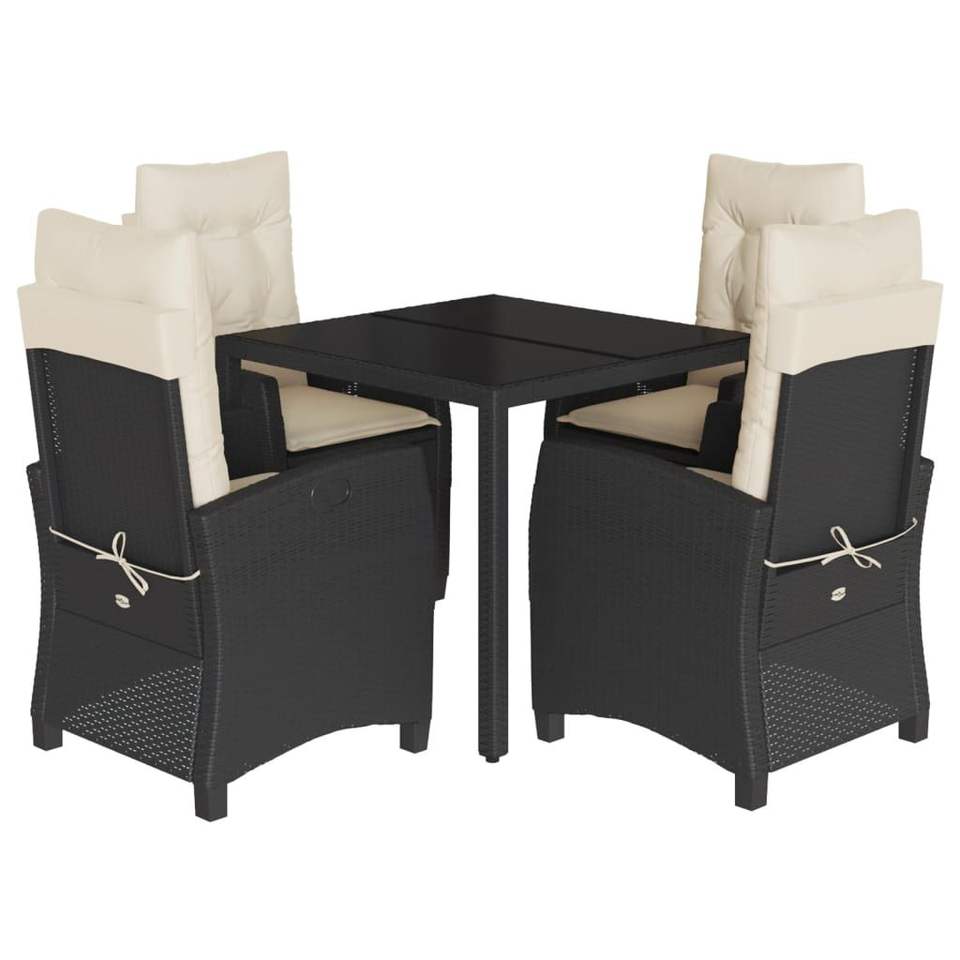 Set da Pranzo da Giardino in Rattan Bianco Crema e Nero, 4 Posti, Arredamento da Esterno Resistente alle Intemperie, Design Contemporaneo