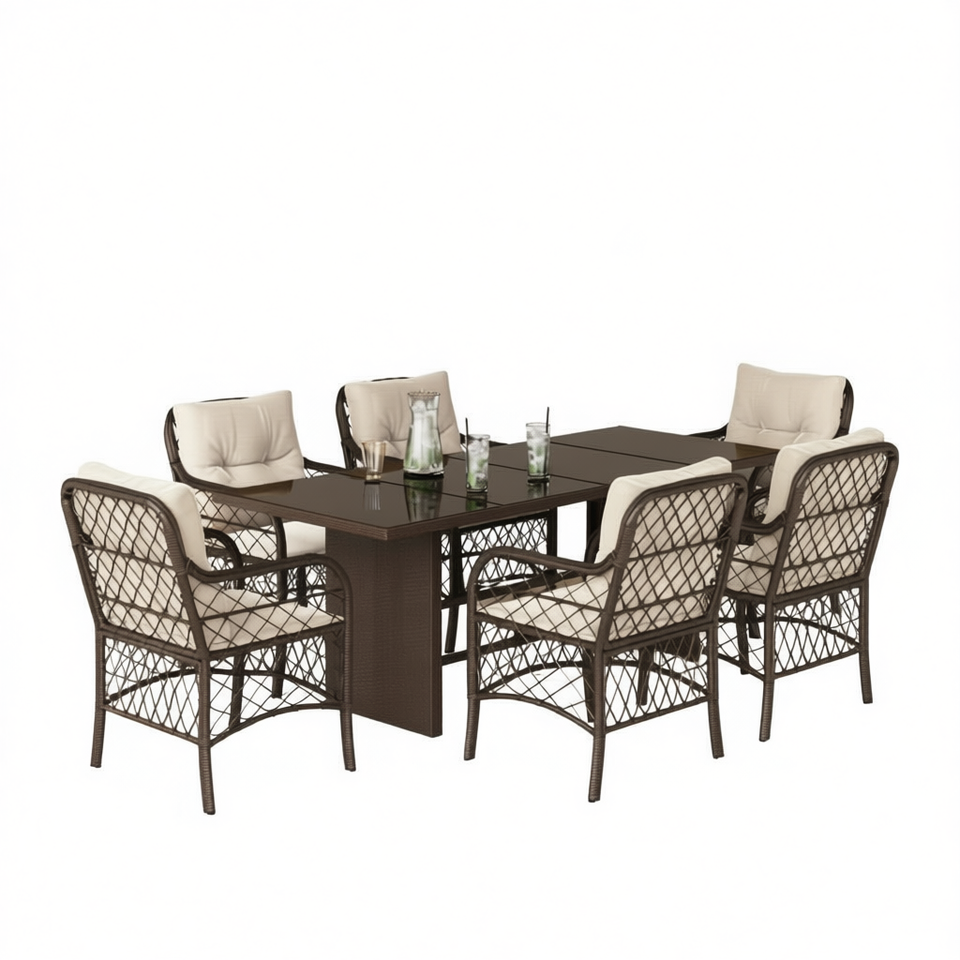 Cream White Brown Garden Dining Set 6 Seater Weather Resistant Outdoor Furniture Contemporary Design