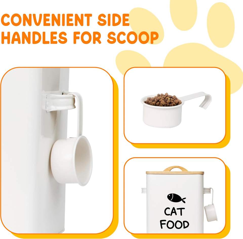 Cream White Eco-Friendly Cat Food Storage Container Airtight with Solid Bamboo Lid Scoop Farmhouse Organizer for Cat Dog Lovers
