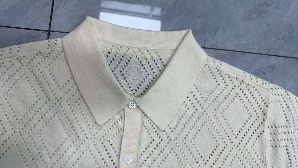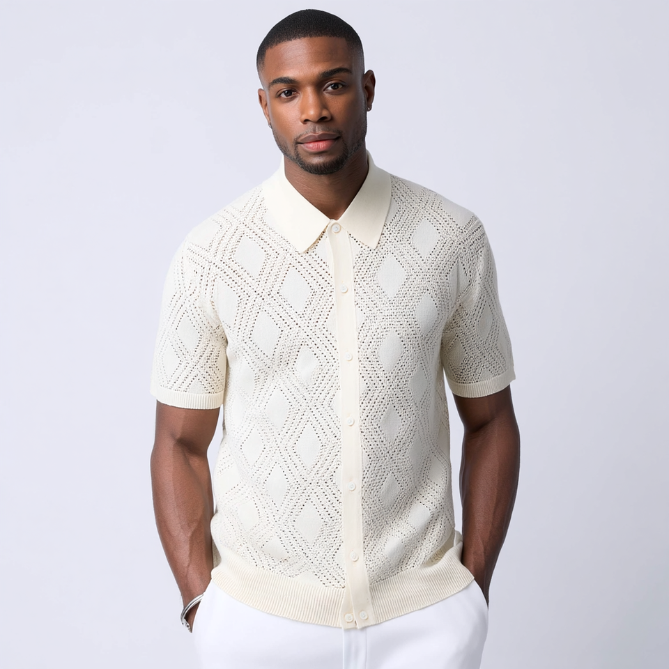 Camicia Polo Estiva da Uomo in Maglia Bianca Crema con Occhielli, Maniche Corte, Traspirante, con Bottoni