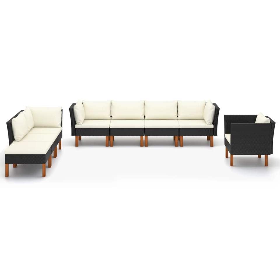 Set Lounge da Giardino Bianco Crema, Mobili da Esterno in Rattan Nero, 6 Posti, Design Contemporaneo con Struttura in Legno di Teak