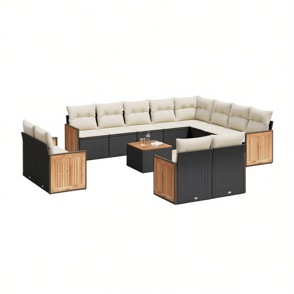 Set Divano da Giardino Bianco Crema, Mobili da Esterno in Rattan Nero, Design Contemporaneo Impermeabile