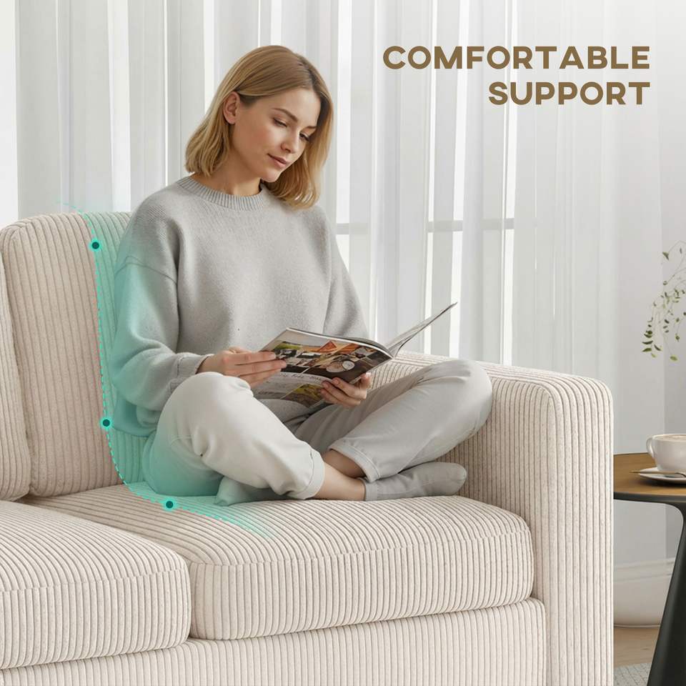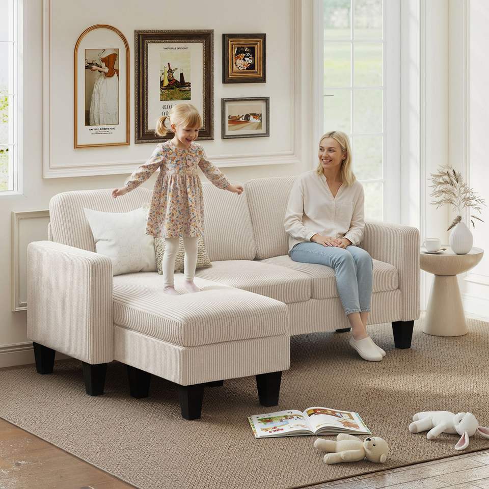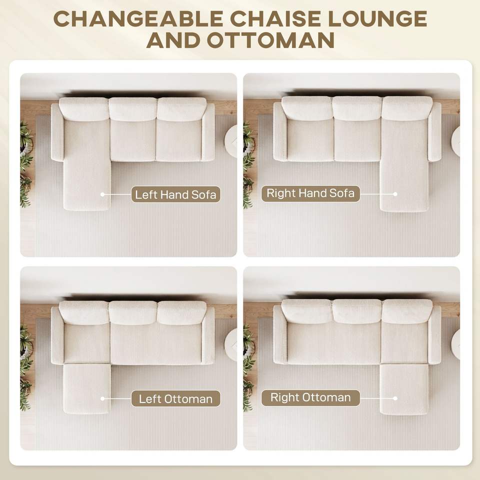 Divano Componibile a L Bianco Crema con Chaise Longue Reversibile o Pouf per Soggiorno