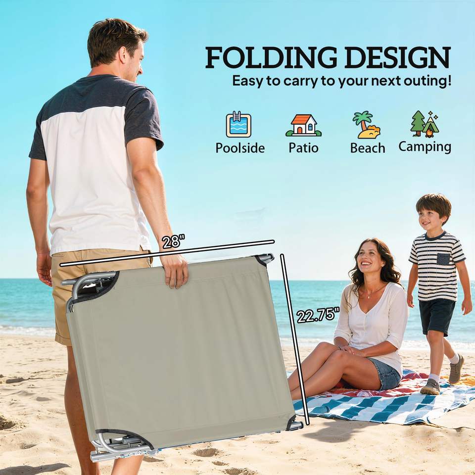 Sdraio Pieghevole da Esterno Bianco Crema con Parasole, Elegante Chaise Longue per Prendere il Sole