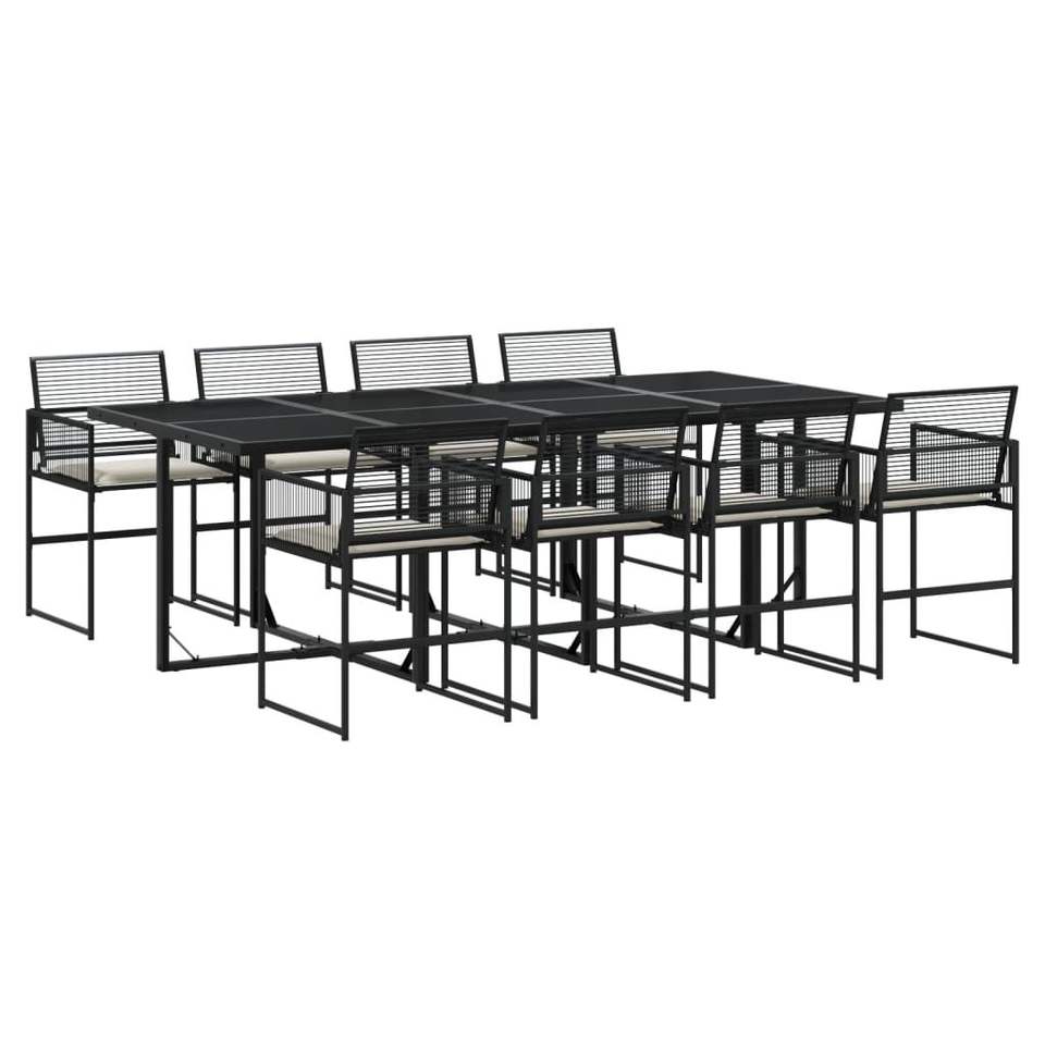 Set da Pranzo da Giardino in Polyrattan Bianco Crema e Nero con Struttura in Acciaio e Vetro