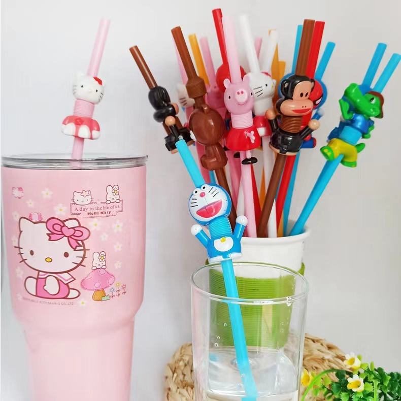 Creativo cartone animato paglia regalo animale plastica arte paglia curva telescopica bambini bere cannucce
