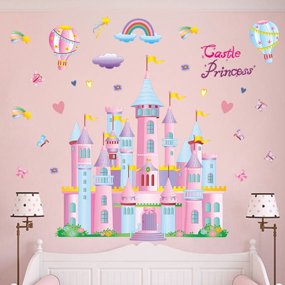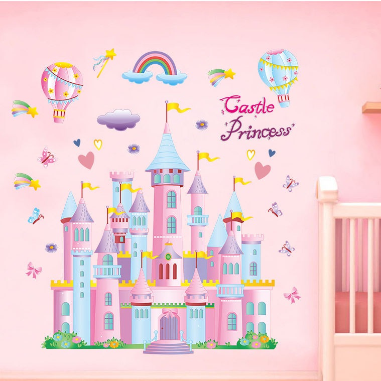 Adesivo da parete creativo del fumetto palloncini del castello rosa decor adesivi per la stanza della ragazza carina
