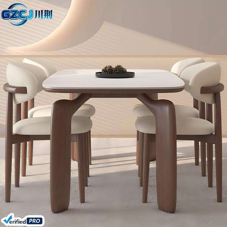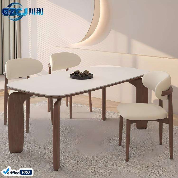 Set Tavolo da Pranzo Creativo ed Economico, Design Moderno e Semplice, Piano in Lastra di Roccia, 6 Posti, Gambe in Legno per Arredamento Casa e Hotel