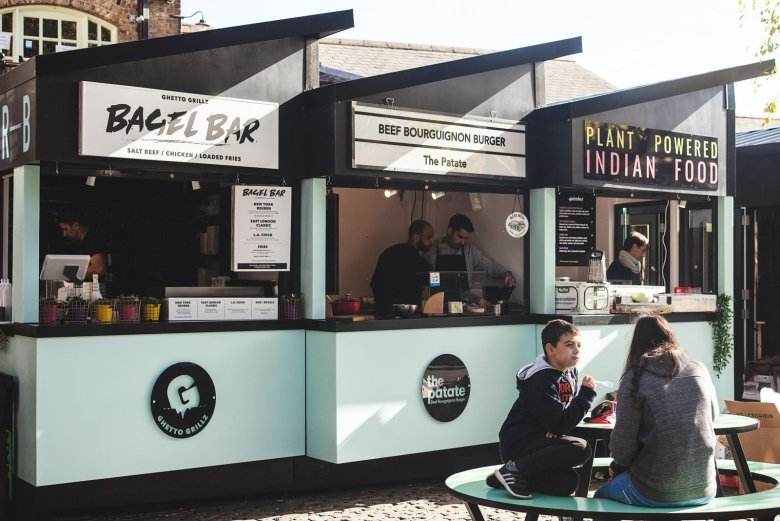 Chiosco di snack alimentari per il centro commerciale salivanti patatine fritte
