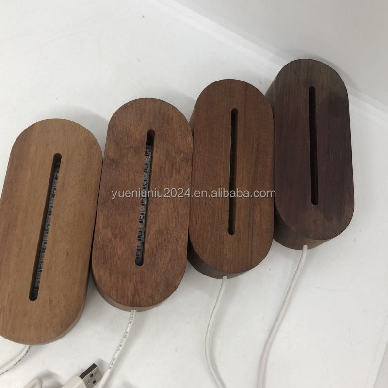Creativo fai da te 3D ha condotto la luce notturna con bacheca cancellabile Base ovale in legno lampada in cristallo acrilico per la decorazione della casa camera da letto