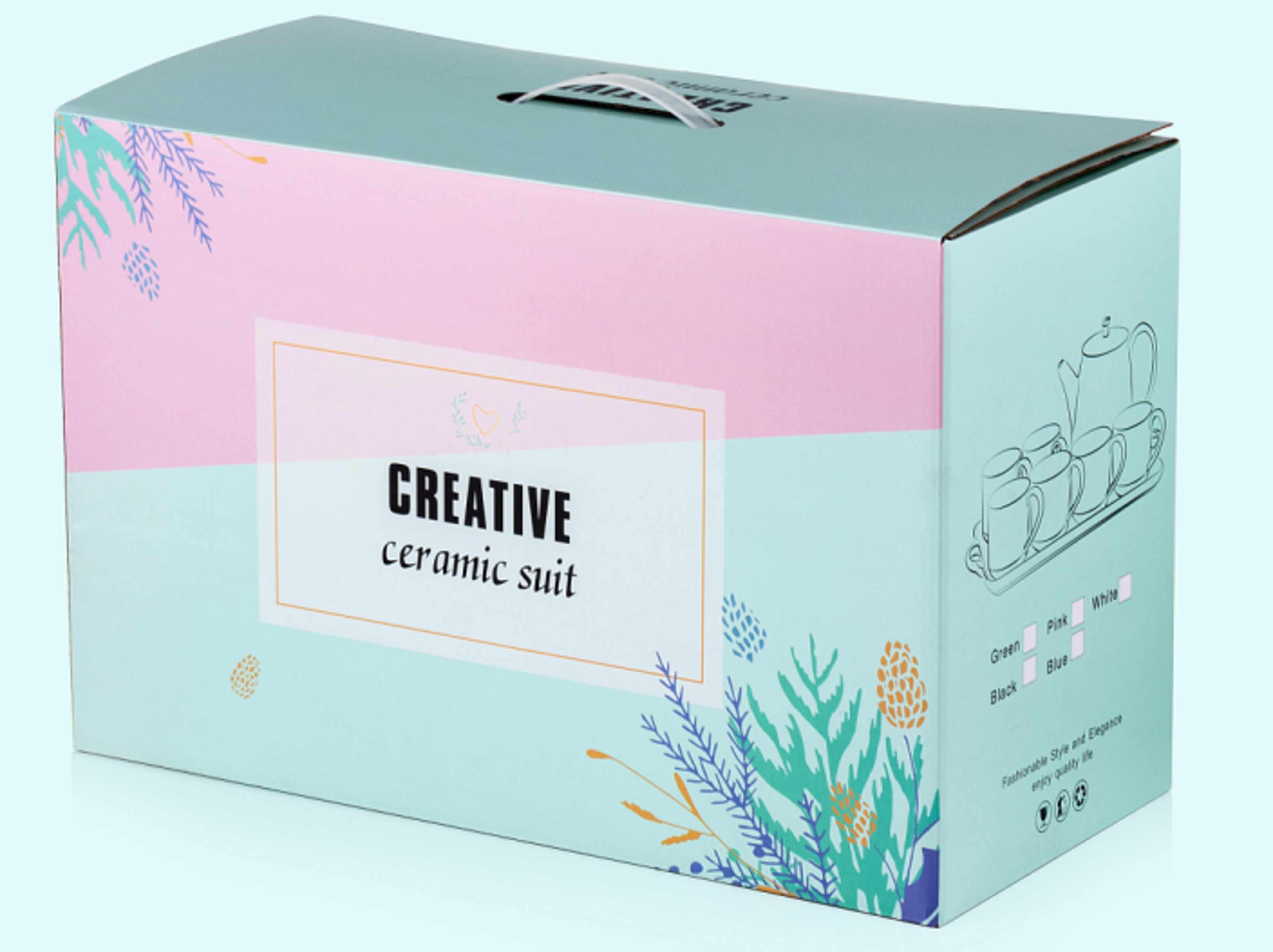 Creative Design Cup Sets Art Colored Ceramic Tea Pot and Six Cups Set With Serving Tray for Gift Set Color Boxes Wedding Gift