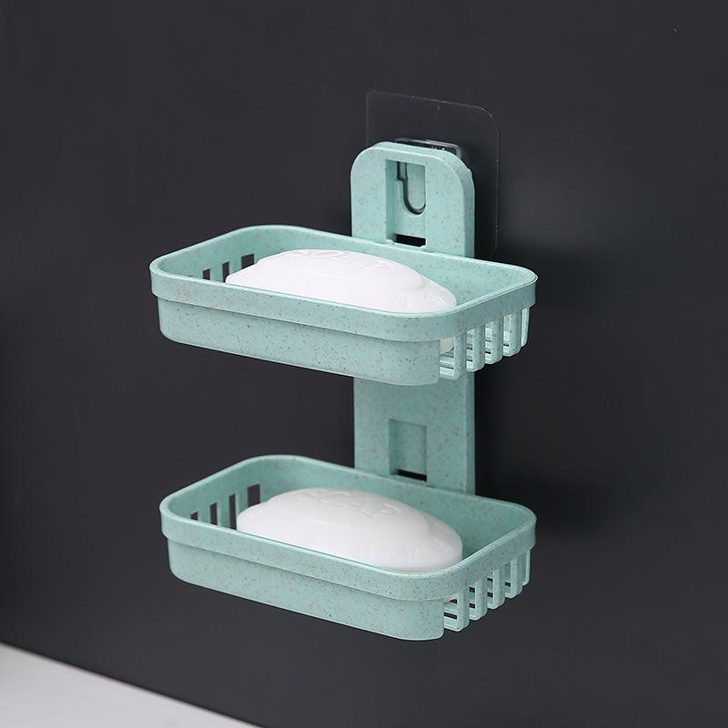 Portasapone creativo doppio strato senza trapano a parete portasapone con ripiano di scarico e ventosa per bagno e servizi igienici