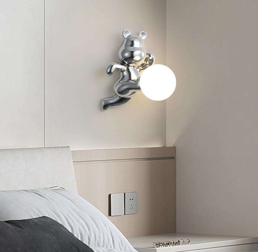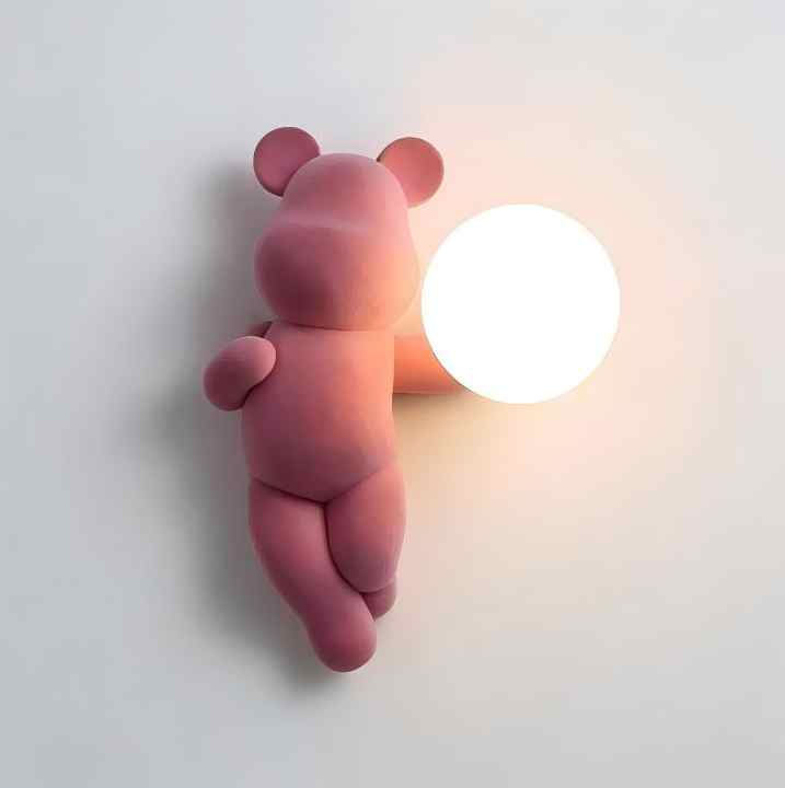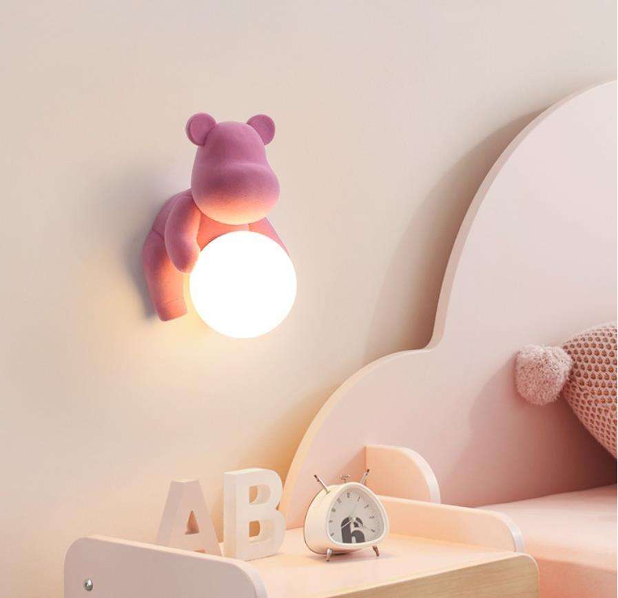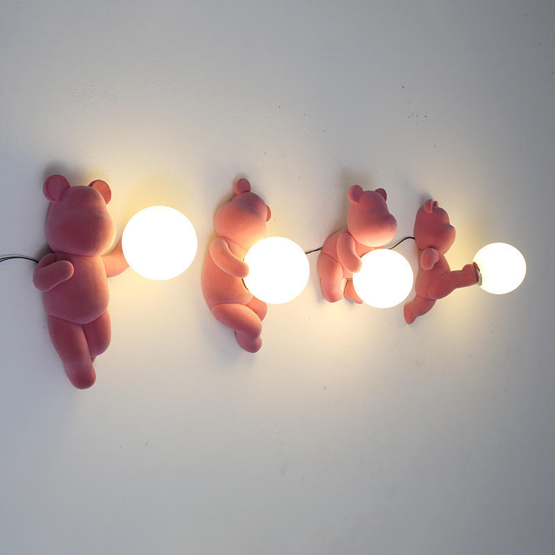 Creative Eco-friendly Resin Cartoon Bear Wall Lamp Nordic Bedside Light for Kids Children's Bedroom Room Decor