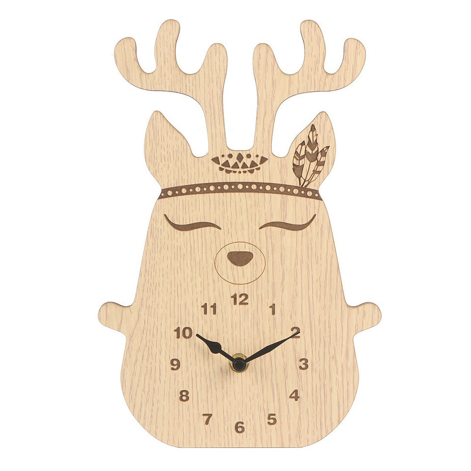 Regalo creativo bella a forma di animale sveglio di legno del fumetto dei bambini orologio da parete per la camera dei bambini decorative