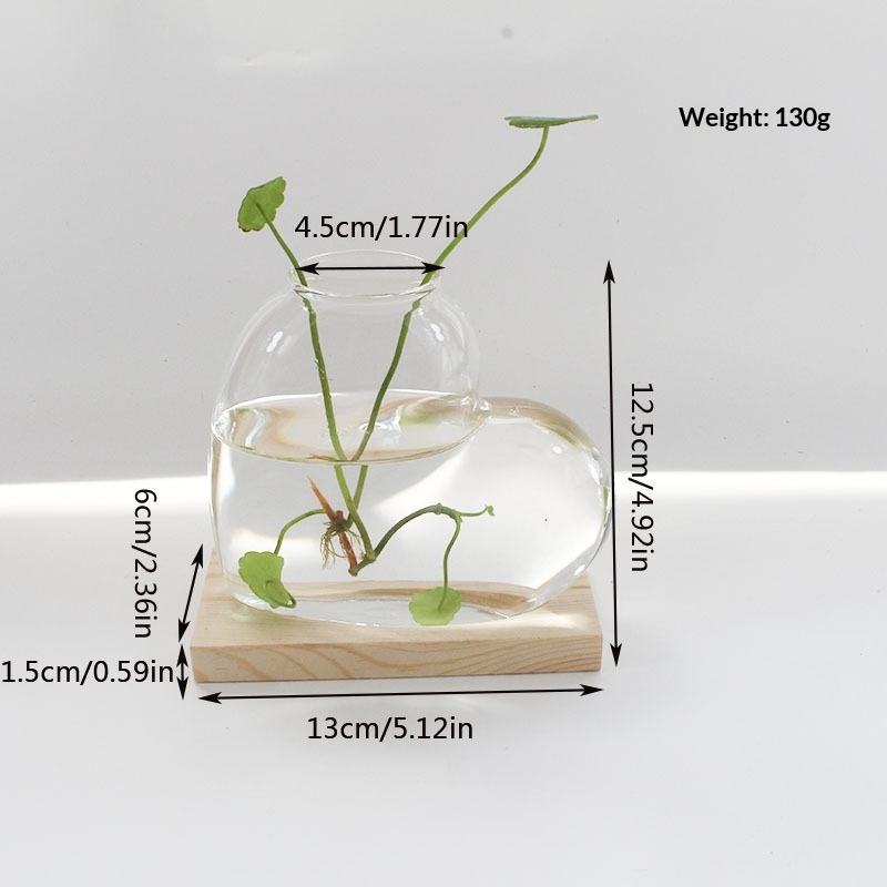 Vaso Creativo a Forma di Cuore in Vetro Borosilicato Trasparente con Base in Legno per Propagazione Idroponica e Decorazione Domestica