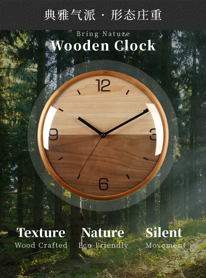 Creative Home Decoration Modern Wooden Wall Clock With Dome Glass Cover