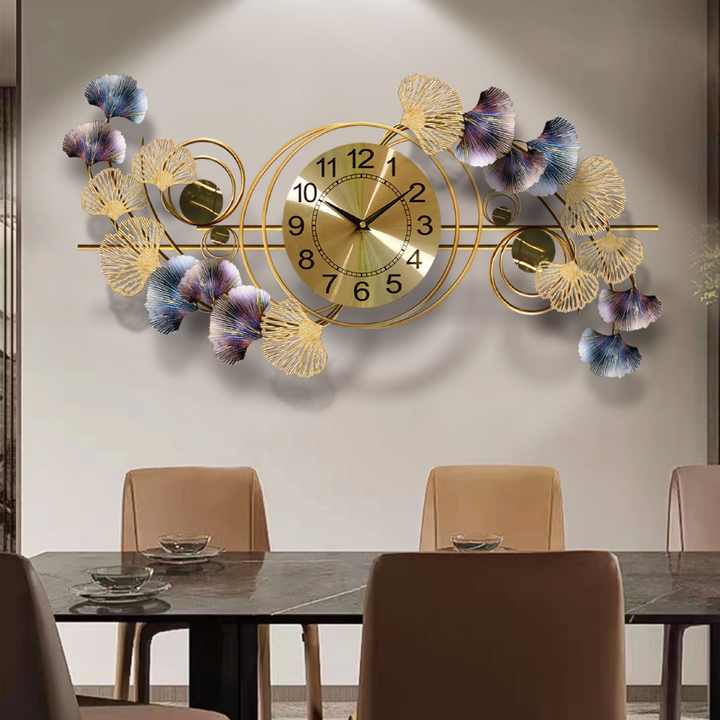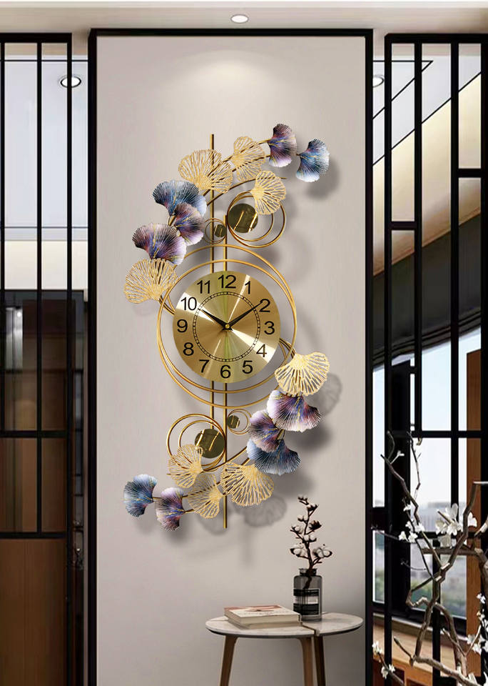 Orologio da Parete Moderno e Lussuoso a Forma di Ginkgo Biloba, Decorazione Creativa per Casa, Soggiorno, Ufficio e Negozio