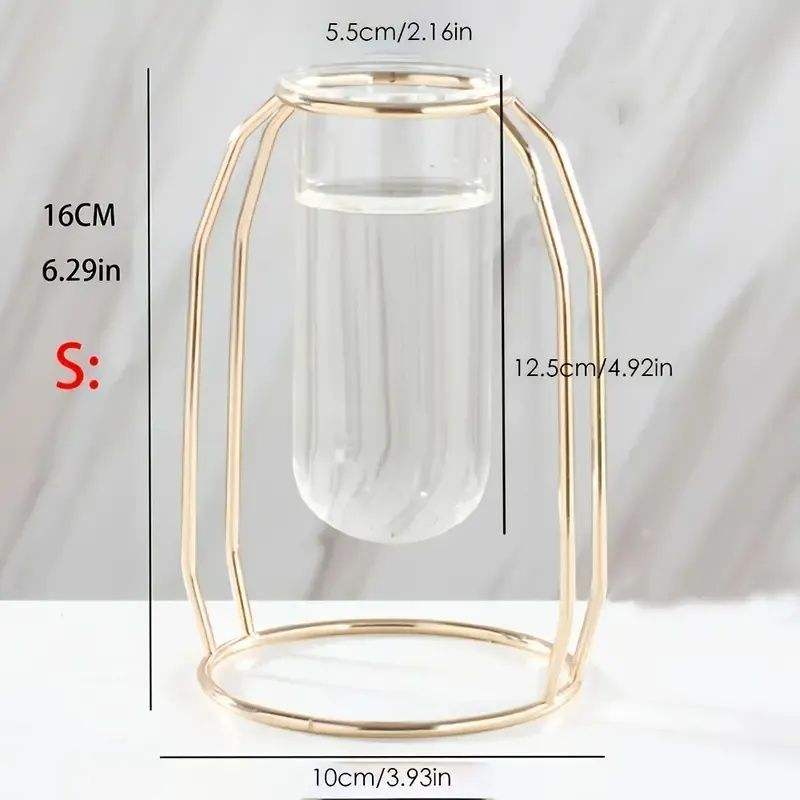 Vaso Creativo in Vetro per Idroponica con Struttura in Metallo per Arredamento Casa e Ufficio - Fioriera per Tulipani, Rose e Rami