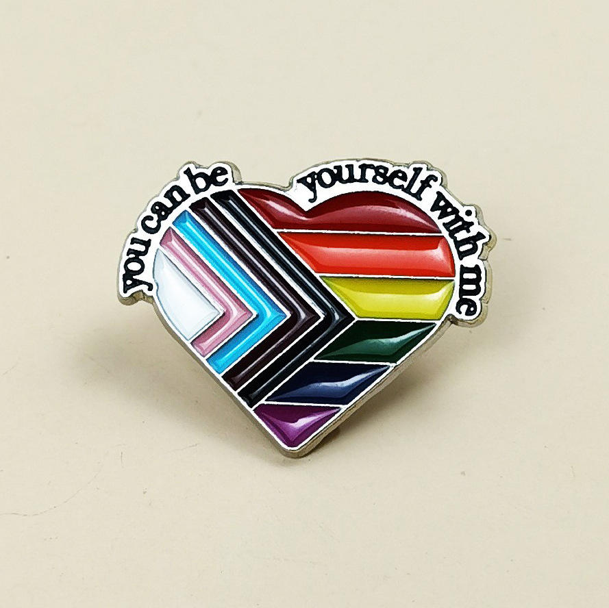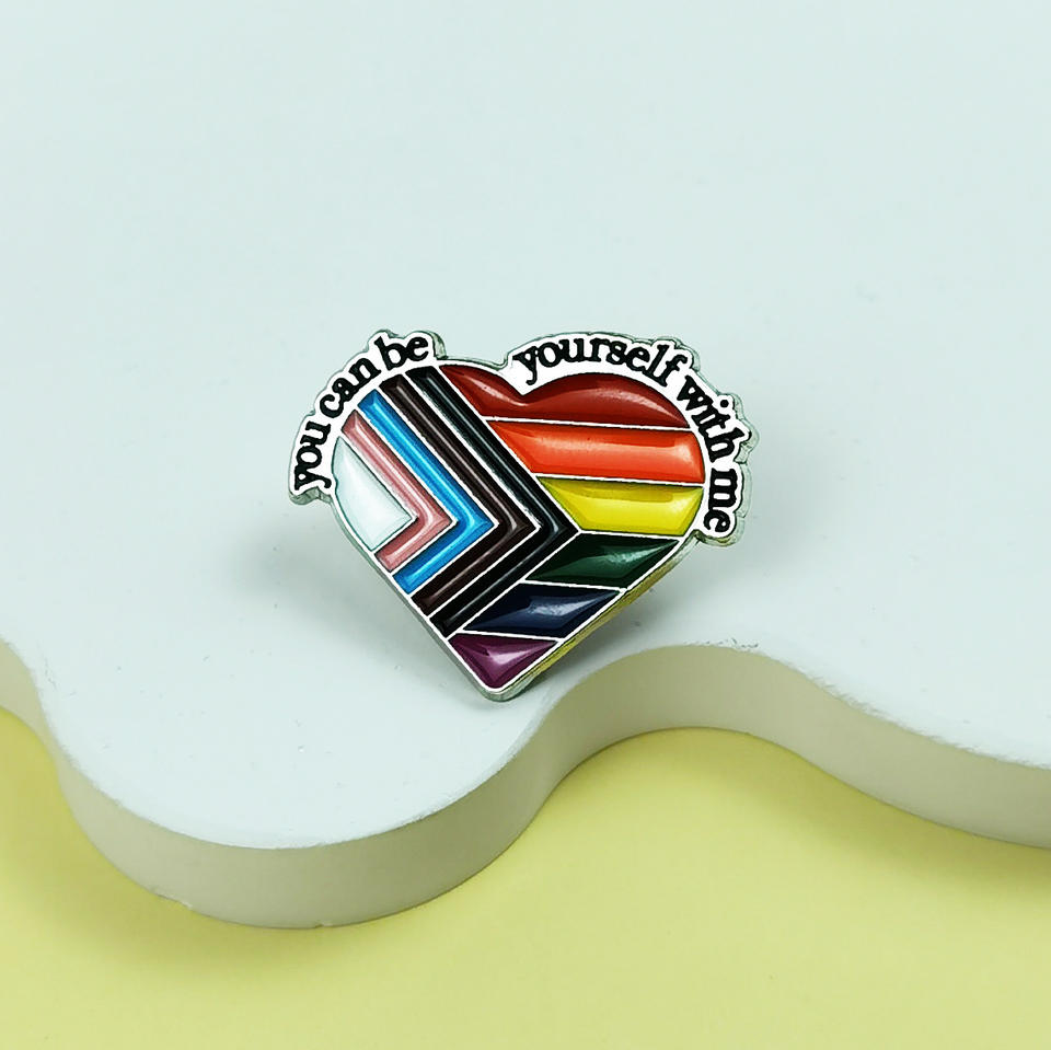 Spilla Creativa LGBTQ a Forma di Cuore 'Tu Puoi Essere Tu Stesso con Me' Arcobaleno Pride Progressivo, Accessorio Distintivo per PRIDE