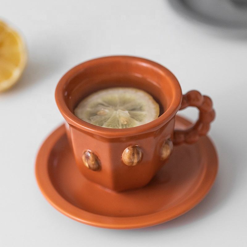 Set di tazze da caffè in ceramica con design in chicchi di caffè con piattino e tazza di latte creativo