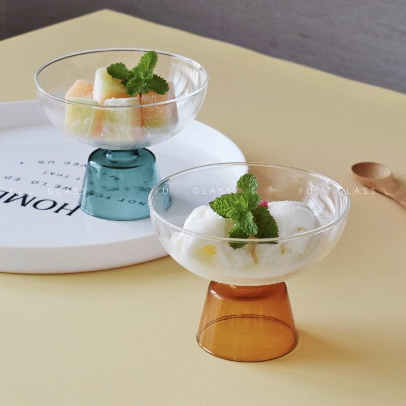 Luce creativa di lusso colorato di vetro ciotola da Dessert tazza alta piede nido di uccello zucchero ciotola di acqua per gelato latte acido tazza