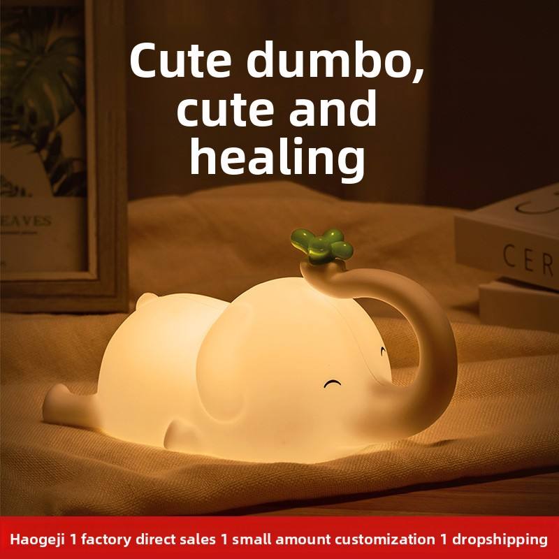 Lampada Creativa a Forma di Elefantino, Luce Notturna Calda Gialla con Controllo a Pulsante per Camera da Letto e Bambini, Compagno di Sonno