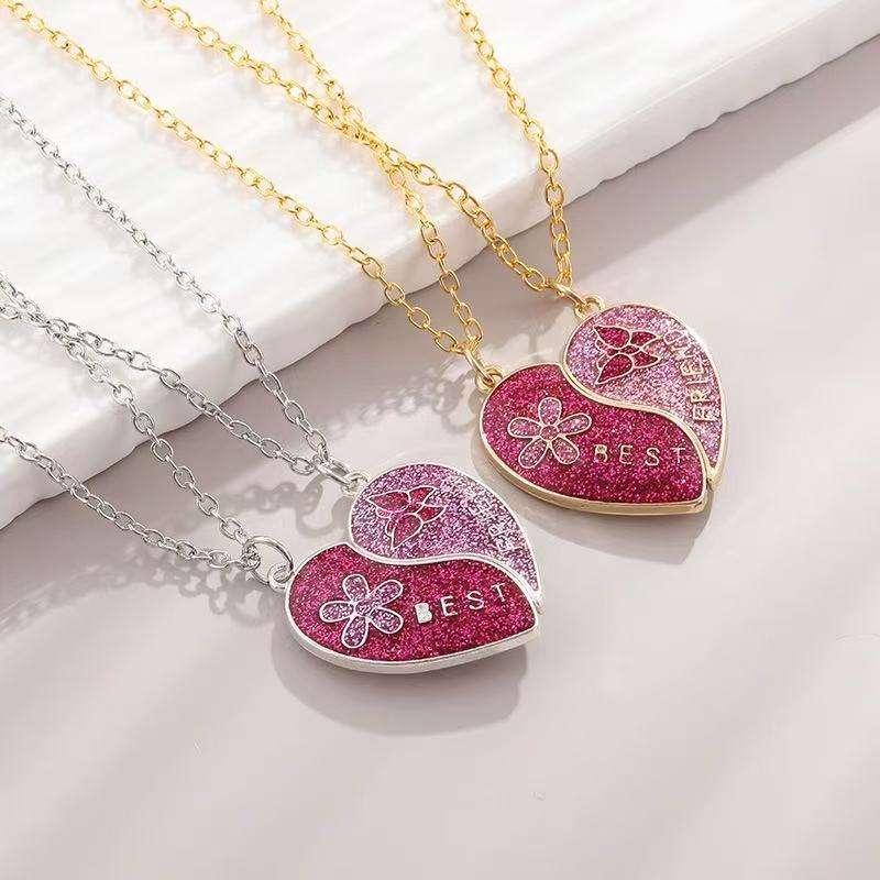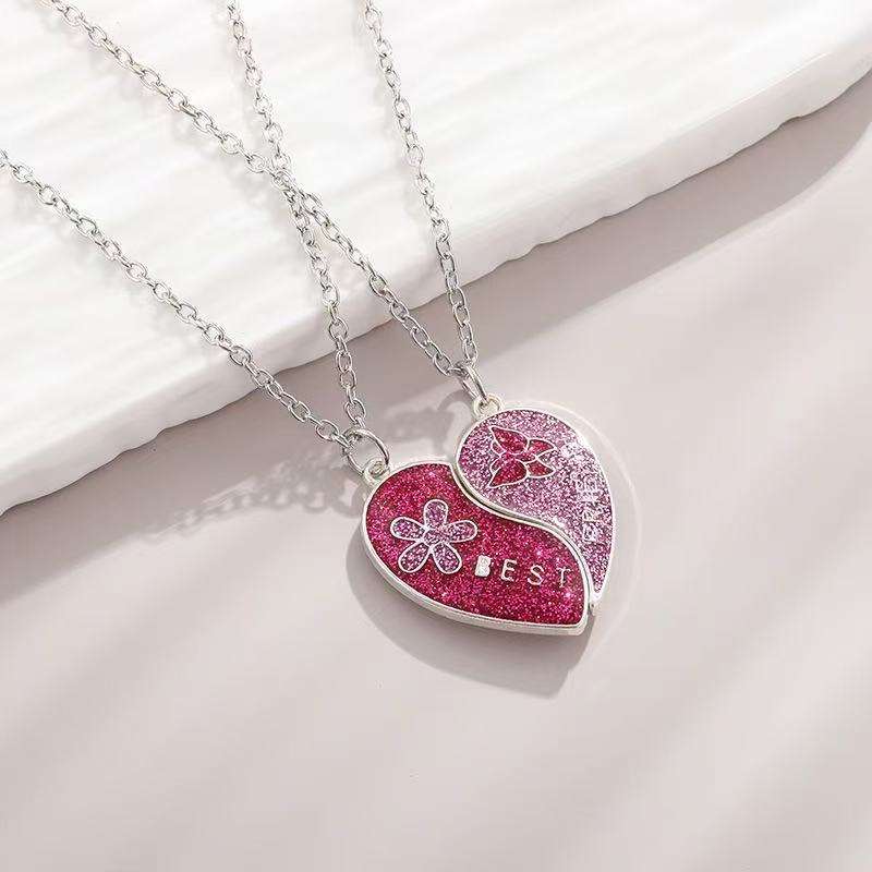 Collana Creativa con Catena Magnetica e Ciondolo a Cuore Smaltato, Gioielli per Migliori Amiche, per Donne e Bambini, in Lega