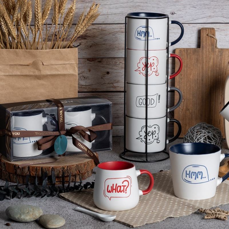 Tazze Creative in ceramica opaca per uso quotidiano interno ed esterno doppio colore glassa testo stampato caffè e set da tè