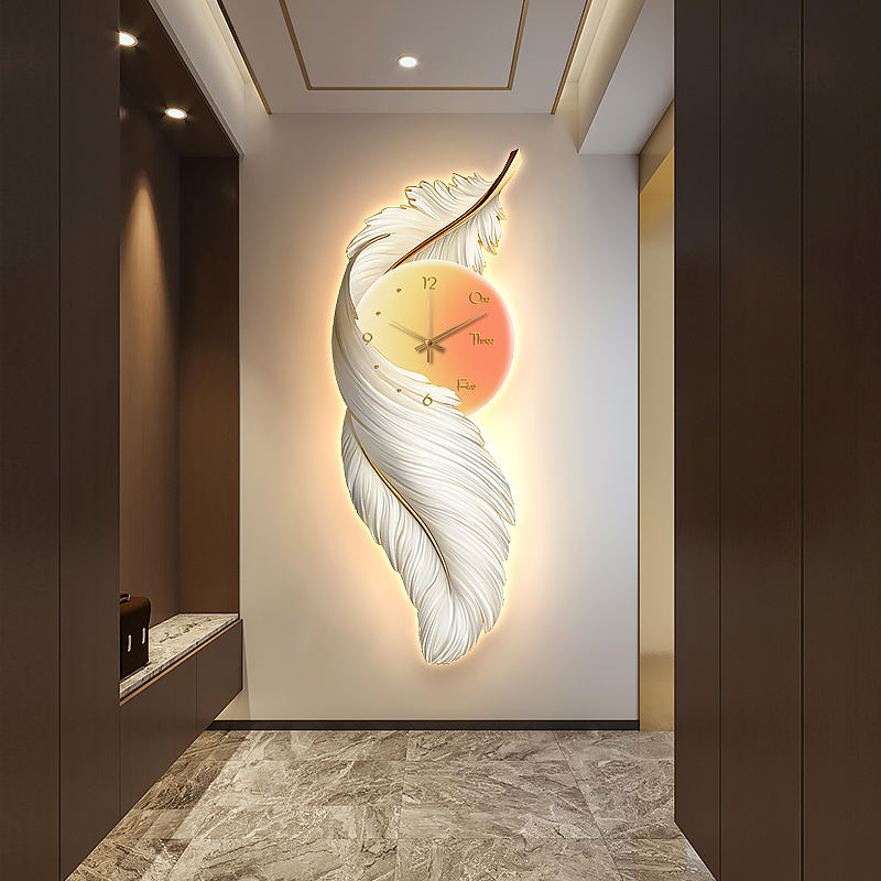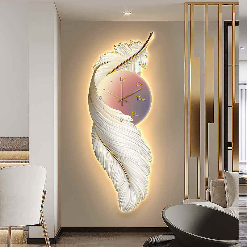 Arte Minimalista Creativa, Dipinto di Natura Morta con Piume e Orologio Luminoso, Base in Carta Stampata, Decorazione Murale da Appendere