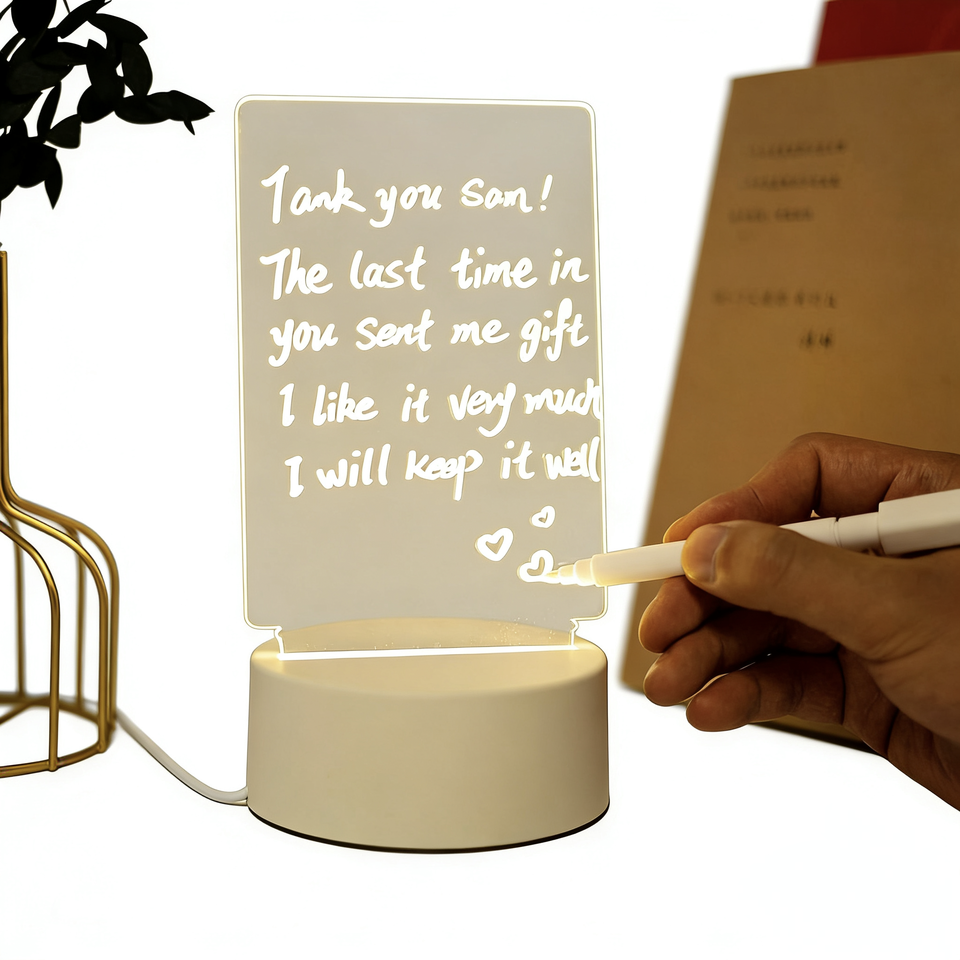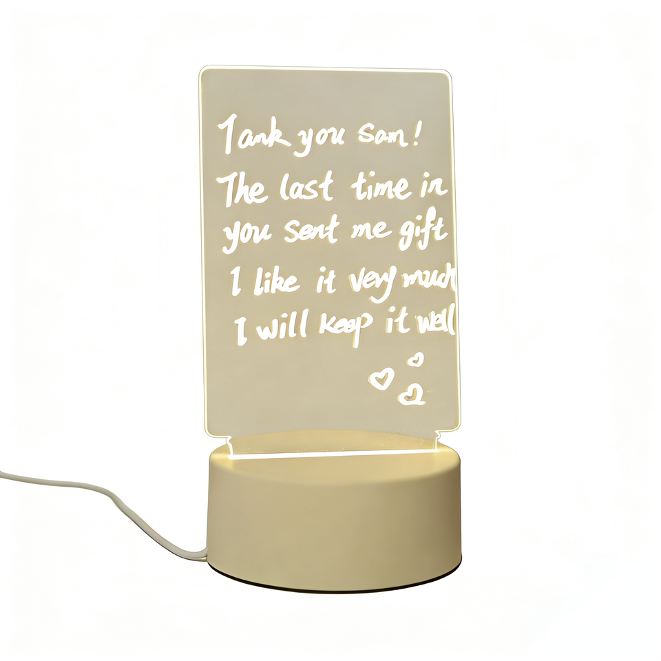 Lampada da Tavolo LED Creativa e Moderna per Camera da Letto, in Acrilico, Luce Calda, Personalizzabile, con Messaggi 3D Scritti a Mano e Lavagna per Bambini