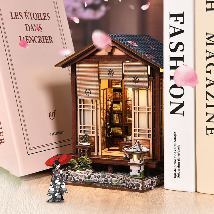 Fermalibri Verticali in Legno Creativi e Moderni con Muschio Preservato, Kit Modello 3D Fai-da-Te, Luce Soffusa, Regalo per Lettori e Compleanni