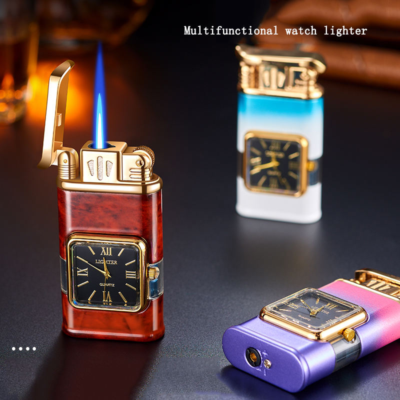 Accendino Orologio Multifunzione Creativo Personalizzato Blu a Ricarica Diretta Regalo di Lusso