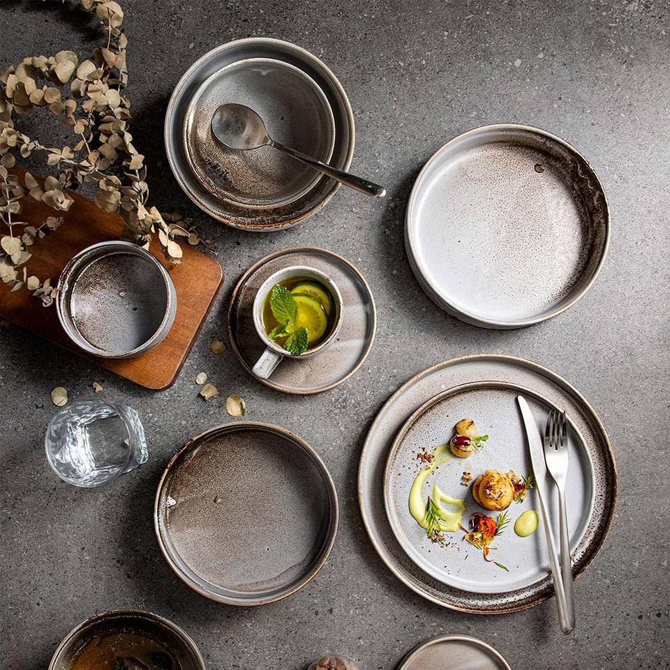 Stoviglie Creative in ceramica nordica di lusso Platos Cookware rustici Gery piatti in porcellana reattiva Set per Hotel ristorante