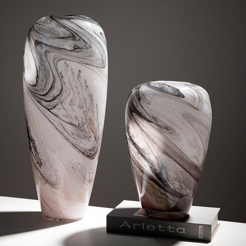 Creative Quicksand Ink Stone Pattern Glass Vase Ornaments Designer Flower Vase Flower Arrangement Ornaments 50 cm Glass Vase