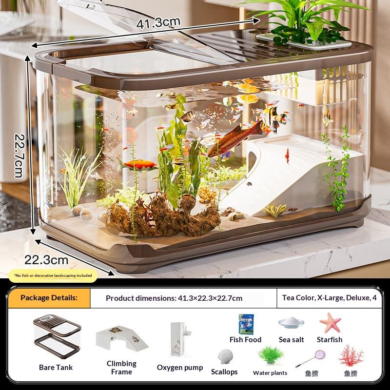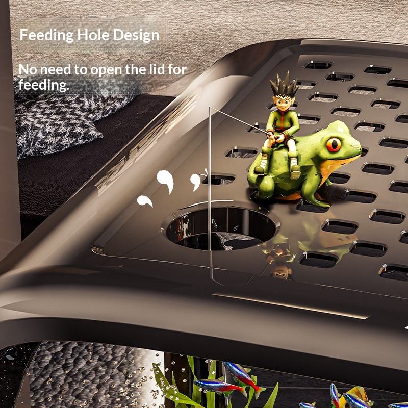 Acquario Creativo con Coperchio Trasparente per Tartarughe e Pesci Rossi, Decorazione per Soggiorno, Acquario da Scrivania Ecologico con Ornamenti Paesaggistici