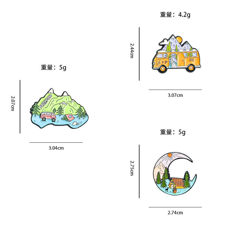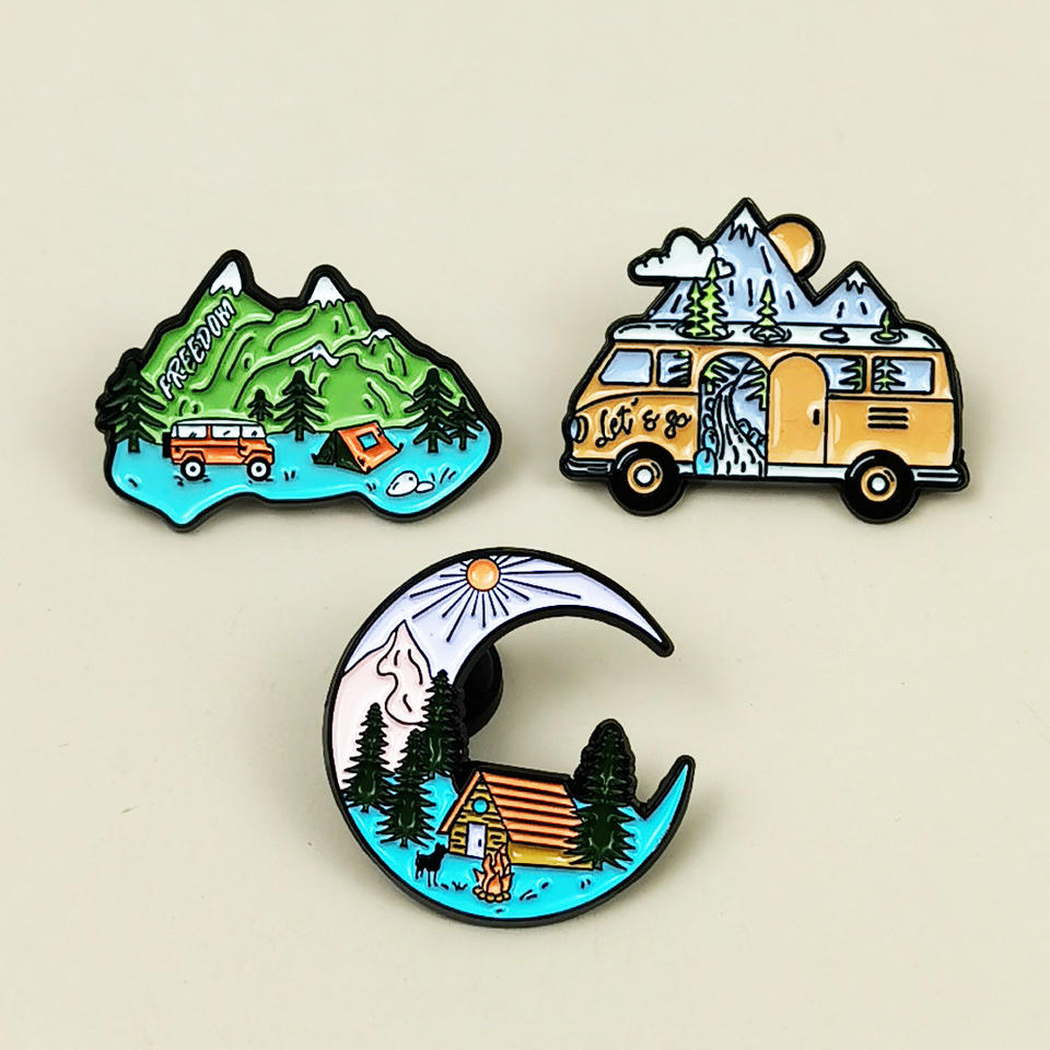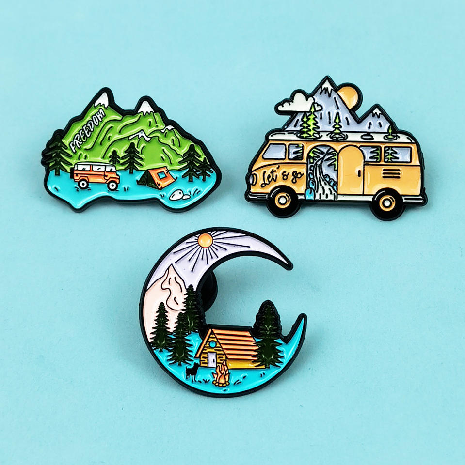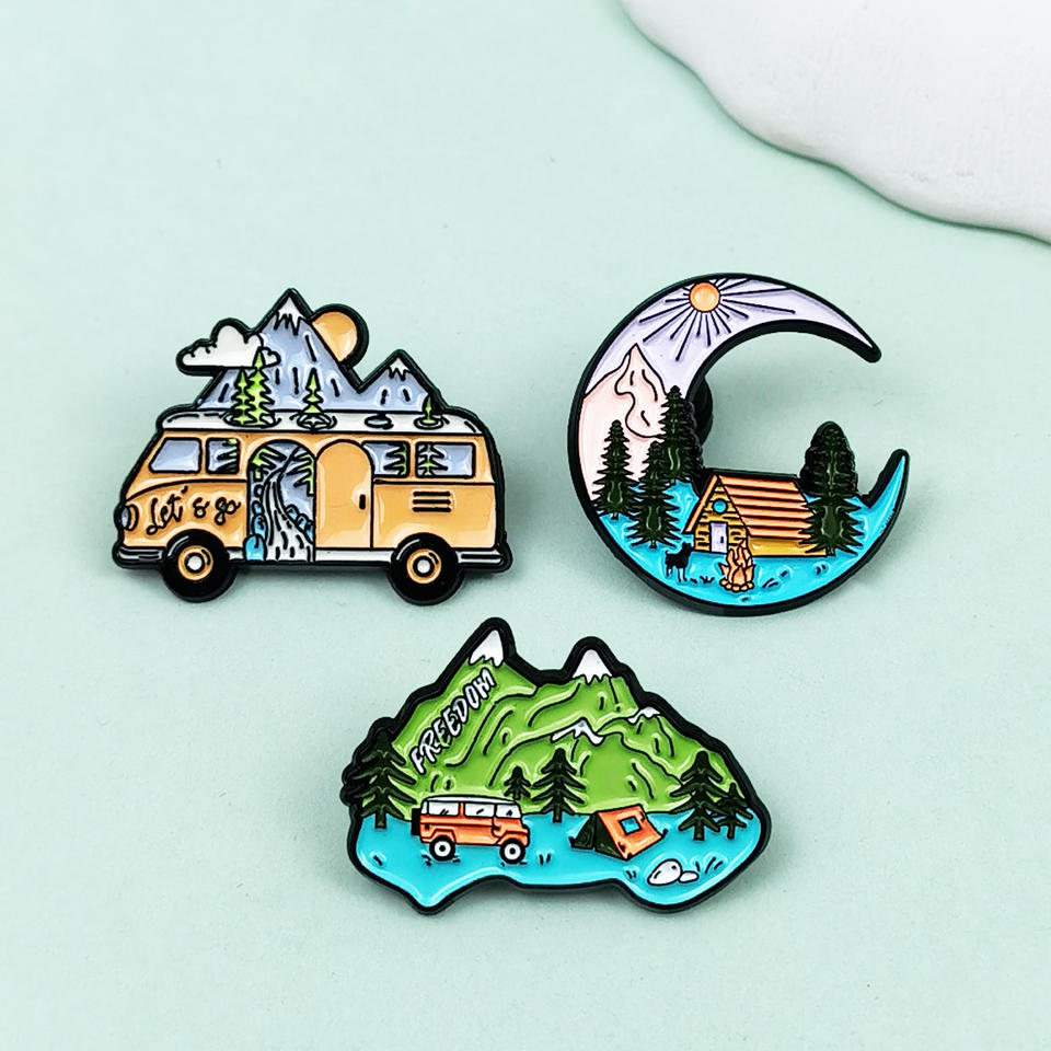 Spilla in lega con paesaggio creativo, a forma di montagna e luna, accessorio smaltato per abbigliamento, zaino e decorazioni