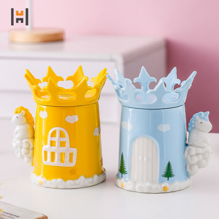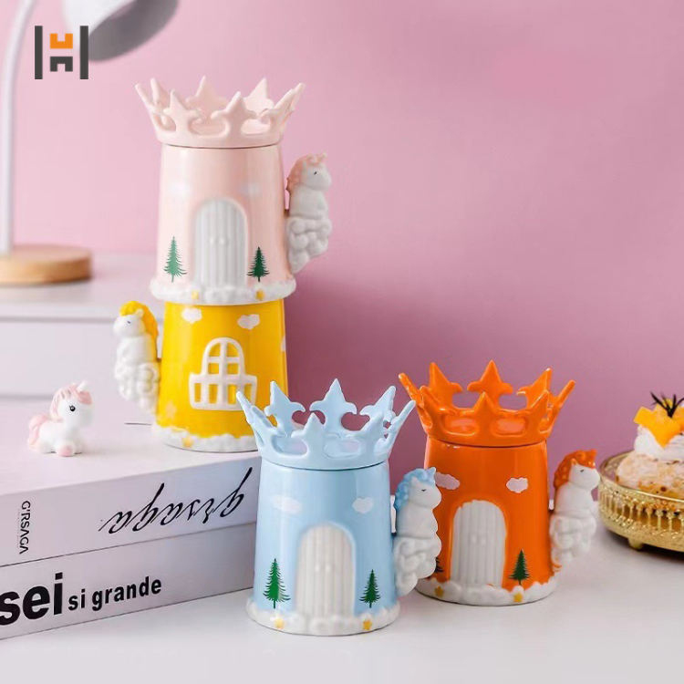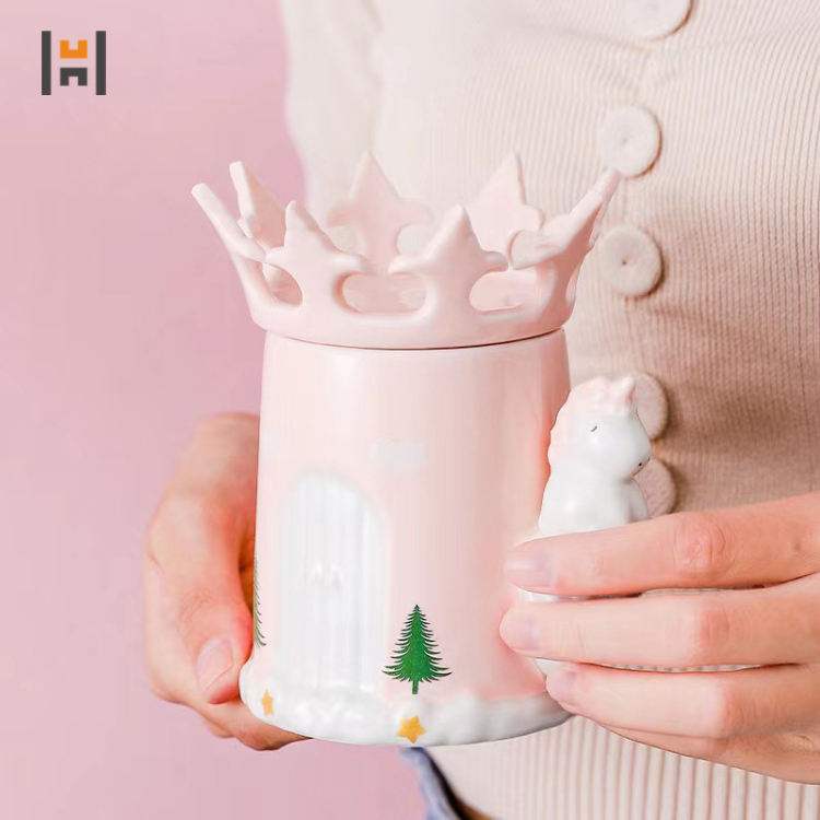 Tazza in Ceramica Creativa a Forma di Unicorno Rosa Principessa con Coperchio a Corona da Sogno per Caffè e Latte Produttori all'Ingrosso