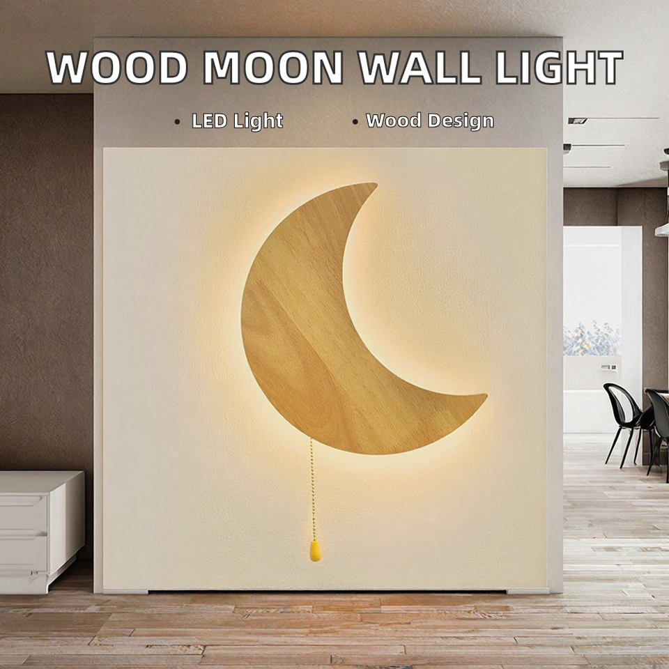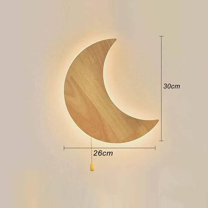 Lampada da Parete Creativa a Forma di Luna in Legno | Design Moderno con Garanzia di 3 Anni | Luce Notturna LED per Camerette dei Bambini, Camere da Letto, Asili e Soggiorni